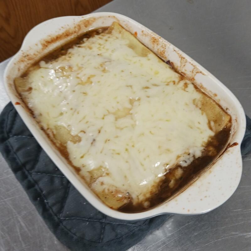This lasagna is made from shredded beef that has been slow-cooked in a pot roast style, resulting in tender, flavorful meat in a rich gravy, layered with traditional lasagna pasta sheets, ricotta cheese, and mozzarella cheese, creating a hearty and comforting meal.