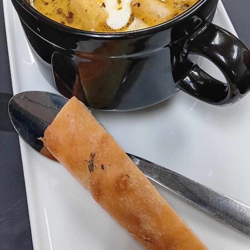 A basket of Italian yeast bread made with imported Italian flour freshly baked and served with warm marinara sauce and an herb-infused extra virgin olive oil.